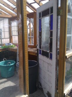 While visiting family in Nebraska I came across this little greenhouse at a boutique we visited. I loved the upcycled nature of the greenhouse hiding around the side yard. Vintage windows, recycled lumber, doors, sink and a bit of this and that to make it all whole. It was great and a testament to what you can do with a little creativity!